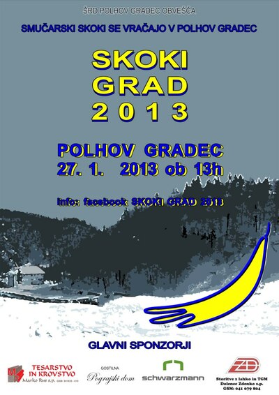 Športno društvo Polhov Gradec vabi na športno prireditev Skoki Grad 2013, ki bo v nedeljo, 27.1.2013 v Polhovem Gradcu s pričetkom ob 13.00.