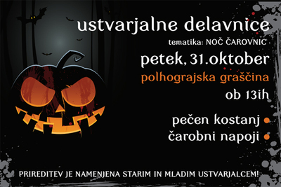 Vabljeni na ustvarjalne delavnice v park Polhograjske graščine v petek, 31.10.2014. Delavnice, ki se prično ob 13.00, so namenjene tako najmlajšim, kot tudi starejšim otrokom ter mladini. Na njih bomo izrazovali buče ter pripravil zanimivo okrasje, ki ga bomo razstavili ko pade noč.